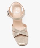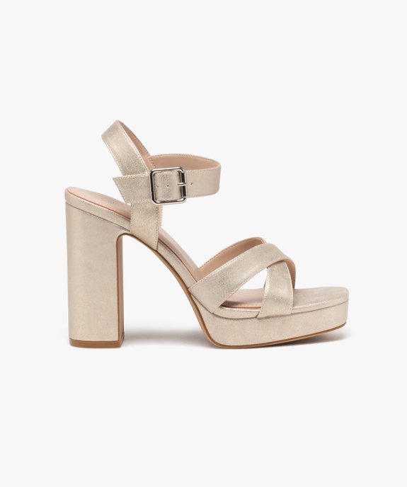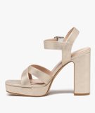 Un maximum de hauteur et de séduction : pari réussi pour ces sandales femme à talon ! Montées sur un talon carré haut de 11,5 cm avec patin de 3 cm, ce sont des sandales qui allongent la jambe et apportent une touche résolument féminine à votre silhouette. Ces sandales à talon haut se composent de deux brides croisées sur l’avant du pied, en matière finement grainée unie. Une valeur sûre pour transformer vos jupes et robes en tenues super glamour. Fermeture bride à boucle sur le côté du pied.