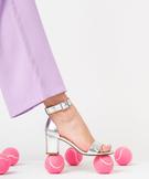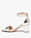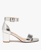 Sandales femme à talon carré fermé avec bride cheville large argente
