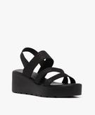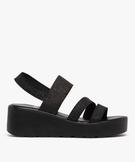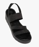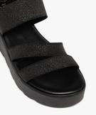 Sandales femme à talon compensé avec brides élastiques pailletées noir