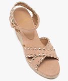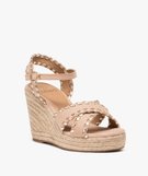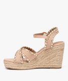 Sandales femme à talon compensé avec brides unies à contour métallisé[MISSING] beige