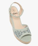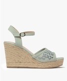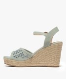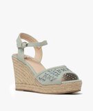 Sandales femme à talon compensé avec dessus denim ajouré[MISSING] bleu