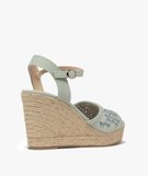 Ces sandales cordes sont idéales pour un été bohème, tendance et ultra-féminin ! Avec une bride ajourée à l'avant et une bride cheville à boucle, le décolleté est sublime. L'effet denim de ces nu-pieds est parfait pour habiller vos robes et bermudas de saison. Sandales à talon compensé de 9,5 cm. Semelle intérieure moussée.