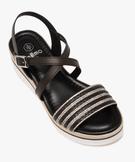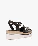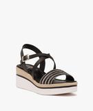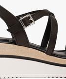 Sandales femme à talon compensé contrastant et bride large à strass noir