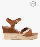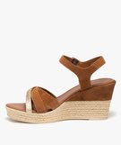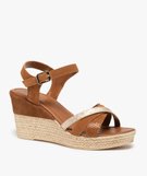 Sandales femme à talon compensé dessus cuir – Tanéo marron