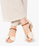 Sandales femme à talon compensé dessus drapée en tissu beige