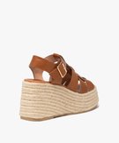 Sandales femme à talon compensé en corde avec brides larges marron