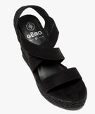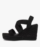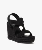 Sandales femme à talon compensé en corde unies à enfiler noir