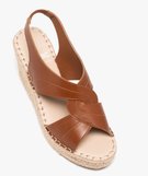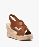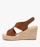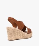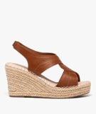 Sandales femme à talon compensé en corde unies à enfiler marron