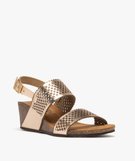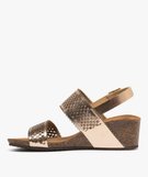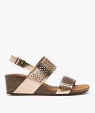 Sandales femme à talon compensé en cuir avec brides ajourées effet métallisé marron
