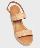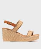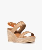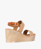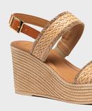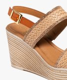 Sandales femme à talon compensé et brides effet tissé avec paillettes[MISSING] beige