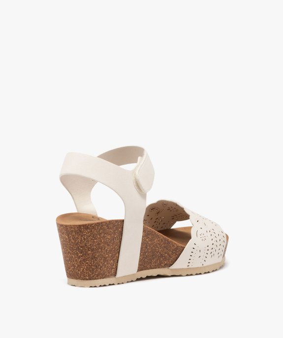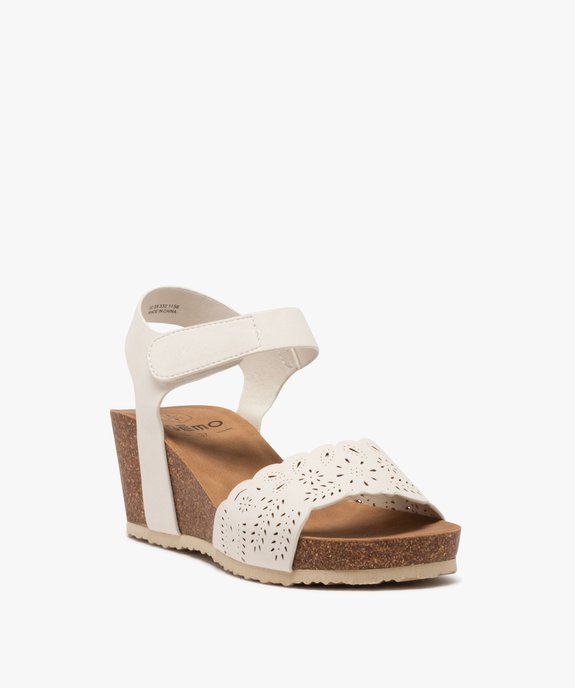 Sandales femme à talon compensé unies avec bride à motifs ajourés et à scratch blanc