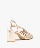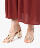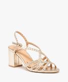 Ces sandales femme s’affichent au top de l’élégance et de la féminité. Montées sur un talon carré de 7,5 cm, elles affichent une belle hauteur pour affiner la jambe et féminiser la silhouette. La tige est composée de fines brides tressées en matière brillante. Le pied, largement dénudé, est élégamment mis à l’honneur ! Ces sandales à talon seront parfaites pour compléter une robe colorée ou une tenue de cérémonie. Fermeture bride à boucle sur le côté du pied.