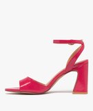 Sandales femme à talon flare vernies et à bride cheville croisée à l'arrière rose