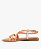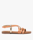 Fabriquées en Europe, ces sandales GEMO optent pour une allure casual, élégante et féminine. Les jolies brides sont contrastées par un liseré doré tendance. Pour mettre en valeur votre peau dorée et vos tenues de saison, cette paire de nu-pieds pour femme est idéale. En journée comme en soirée, vous pouvez porter ces sandales plates avec robes et pantalons légers. Fermeture à boucle et semelle intérieure moussée.