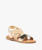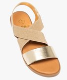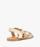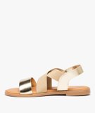 Ces sandales pour femme promettent un excellent confort de marche ! Montées sur un petit talon plat, elles comportent une semelle intérieure rembourrée. La tige est composée de larges brides unies, dont deux en textile élastique qui se croisent au niveau du cou-de-pied. Pratique : on chausse ces nu-pieds en un clin d’œil ! Des sandales à talon plat simples et jolies, qu'on portera autant avec une robe imprimée qu’un short et un tee-shirt.