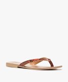 Sandales femme à talon plat et entre-doigts imitation cuir orange