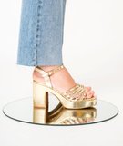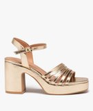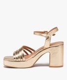 Sandales femme à talon plateforme et bout carré à fines brides[MISSING] dore