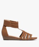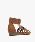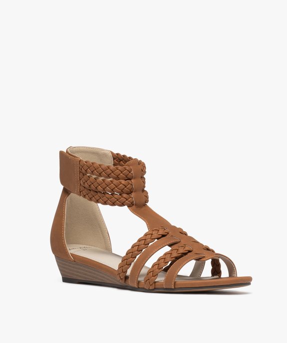 Craquez pour le style unique de ces sandales pour femme. L'association des brides lisses et tressées sur le dessus du pied assure un bon maintien et un style très original. Les brides tressées autour de la cheville apportent un esprit bohème ou folk à ces nu-pieds pour femme. Le petit talon compensé offre ce qu'il faut de confort sans dénaturer le côté spartiate de cette chaussure d'été. Vous les porterez avec un short en jean et une blouse fleurie ample. Fermeture par scratch sur le côté externe de la cheville