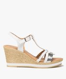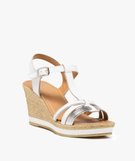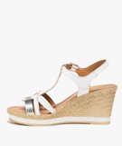 Sandales femme compensée avec brides en cuir détail métallisé - Taneo blanc