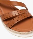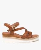 Avec une jolie boucle métallisée pour les ajuster, ces nu-pieds pour femme sont élégantes et confortables. Le compensé permet d'allonger votre silhouette et ses contrastes avec les différentes couches font tout leur charme. Autre détail féminin et tendance : les brides délicatement ajourées. Vous pouvez porter ces sandales à talon avec une jolie robe bohème ou vos pantalons d'été. Semelle intérieure moussée. Fermeture à boucle.