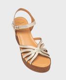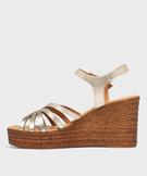 Sandales femme compensées à fines brides unies et surpiquées - Taneo[MISSING] dore