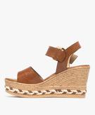 Sandales femme compensées avec bride cheville striée marron