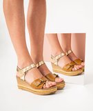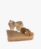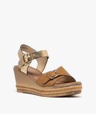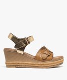 Sandales femme compensées avec brides à boucle fantaisie marron clair