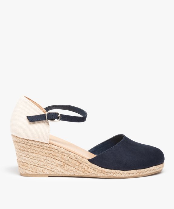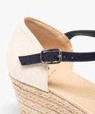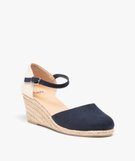 Ces sandales compensées s’affichent sur une ligne classique qui reste toujours aussi charmante. La tige est fermée au bout et au talon, ouverte sur les côtés pour garder une allure chic en toutes circonstances. On aime l’association de matières, une toile épaisse sur le contrefort et de la suédine sur l’avant et la bride, qui s’accorde bien avec la semelle intermédiaire recouverte de corde. Des sandales à talon à porter avec vos robes préférées. Fermeture bride à boucle sur le côté du pied.