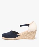 Sandales femme compensées dessus suédine unie bleu fonce