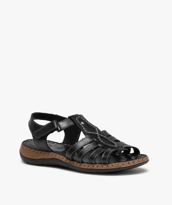 Ces sandales femme affichent tous les éléments nécessaires pour apporter un maximum de confort au quotidien. Ce sont des sandales à talon plat, montées sur une semelle amortissante. La tige est inspirée de classiques spartiates, avec bout ouvert et large empiècement central marqué de surpiqûres. Ces sandales intemporelles trouveront vite une place auprès des tenues de tous les jours : pantalon, jupe ou robe, elles sont simples et de bon goût. Fermeture bride scratch sur le côté du pied.