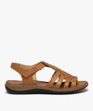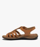 Ces sandales femme affichent tous les éléments nécessaires pour apporter un maximum de confort au quotidien. Ce sont des sandales à talon plat, montées sur une semelle amortissante. La tige est inspirée de classiques spartiates, avec bout ouvert et large empiècement central marqué de surpiqûres. Ces sandales intemporelles trouveront vite une place auprès des tenues de tous les jours : pantalon, jupe ou robe, elles sont simples et de bon goût. Fermeture bride scratch sur le côté du pied.