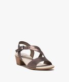 Sandales femme confort à petit talon carré et brides pailletées[MISSING] marron clair