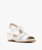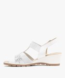 Sandales femme confort à talon compensé avec brides fantaisie élastiques et en cuir blanc