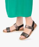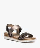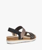 De la légèreté, de la souplesse, du cuir et des brides aérées : en un mot, du confort ! Ces sandales femme affichent 100% de réussite en ce qui concerne le confort. Le style n’est pas en reste, avec une semelle bicolore tout à fait tendance. La tige est composée d’une large bride ajourée sur l’avant et, au niveau du cou-de-pied, une bride élastiquée. L’ensemble dans des tons de couleur métallisés bien assortis. Des nu-pieds féminins, à porter au quotidien avec vos tenues préférées. Fermeture facile à manipuler grâce à un scratch placé sur le côté du pied.