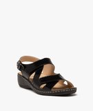 Sandales femme confort avec brides vernies en cuir et à scratch[MISSING] noir