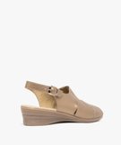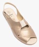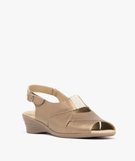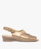 Sandales femme confort en cuir brillant avec bride cheville et détail élastique [MISSING] marron clair