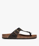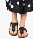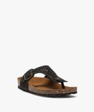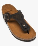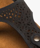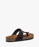 Sandales femme en cuir à entre-doigts avec bride ajourée à boucle noir