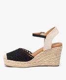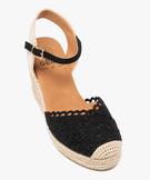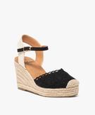 Sandales femme en macramé uni avec bout fermé et semelle corde compensée noir