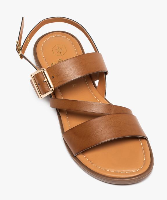 Sandales femme plates casual avec deux boucles et à brides unies marron clair