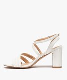 Tout en finesse, ces sandales femme sauront rendre élégantes vos tenues estivales. On aime leurs lignes simples et épurées, joliment mises en valeur par leur haut talon carré. Les brides sont fines, marquant de jolies courbes sur le pied. Avec leur talon recouvert et le bout de la semelle recouvert, ces sandales femme s’inscrivent parmi les pièces élégantes de la saison. Elles compléteront facilement une robe de soirée. Fermeture bride à boucle ajustable sur le côté externe du pied.
