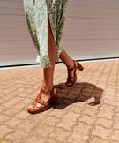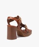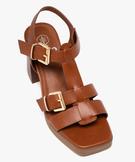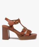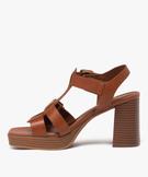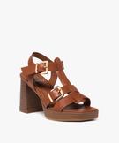 Sandales femme unies à talon haut avec boucles et bout carré marron