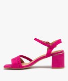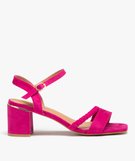 Pour une allure féminine, ces nu-pieds à talon moyen carré sont parfaits. Ils peuvent accompagner vos tenues d'été, aussi bien de jour comme de nuit. Ces sandales pour femme adoptent tous les codes tendances actuels avec un bout ouvert et carré, pour sublimer vos doigts de pied apparents. On aime la fine bride à boucle pour maintenir la cheville et ainsi faciliter la marche. A l'arrière, un liseré métallisé contrastant souligne le talon. Vous pouvez porter ces chaussures d'été avec une robe blanche bohème ou un short en lin.