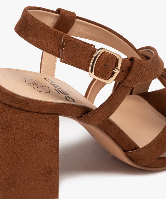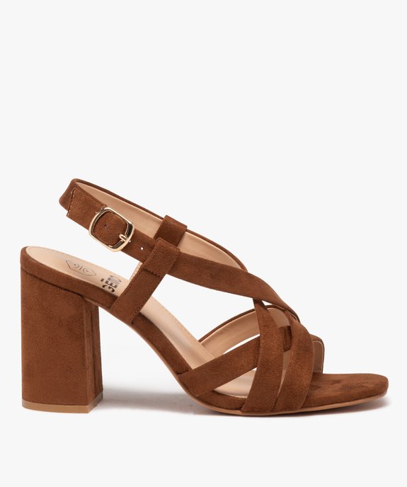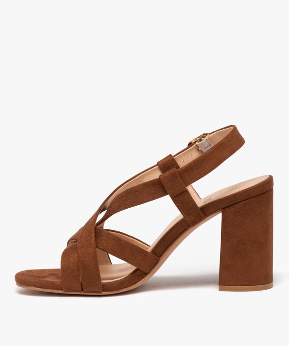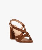 Sandales femmes à talon haut en suédine et brides croisées marron