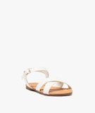 Sandales fille à brides croisées et bride cheville à boucle blanc