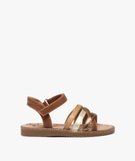 Sandales fille à brides fantaisie avec paillettes et à scratch[MISSING] marron clair