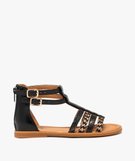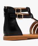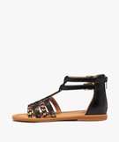 Pour les tenues d'été, ces sandales pour fille offrent une allure urbaine. Avec des brides en cuir imitation unies et à motifs, une autre bride centrale les unit à la cheville. Deux brides à boucles et un zip à l'arrière au niveau du talon fermé maintiennent le pied. Ces nu-pieds enfant s'équipent également d'une semelle intérieure moussée confortable. À porter avec une jupe longue ou un jean et un top uni.