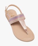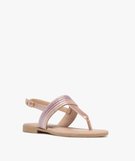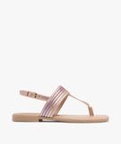 Sandales fille à entre-doigts avec brides tubulaires pailletées rose