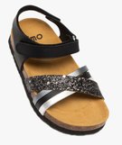 Sandales fille à motifs et à brides contrastées à paillettes noir