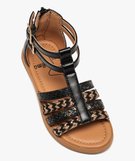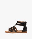 Contrastées par de jolis détails fantaisie, ces nu-pieds pour fille se ferment à l'aide de deux brides à boucle autour de la cheville. Le talon est fermé avec un zip et le bout ouvert. Ces sandales enfant se portent avec une robe légère de saison ou une jupe en jean et un top. Pour plus de confort, la semelle intérieure est finement moussée.