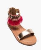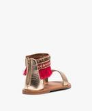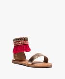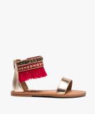 Sandales fille avec bride cheville ornée de perles et franges marron